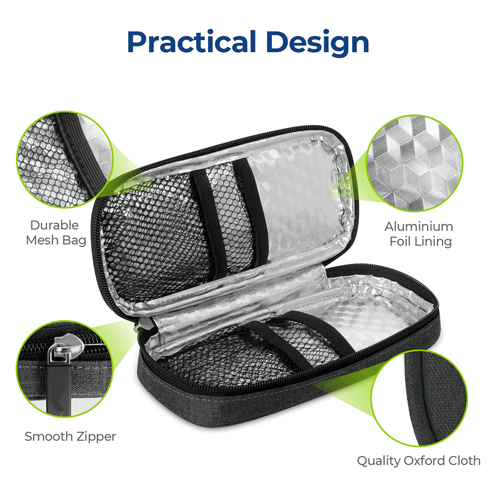 High-quality & SAFE. Made of Oxford fabric exterior, thickened pearl cotton and aluminum interior, the diabetes travel case is ideal for keeping hot items and cold supplies in good condition.